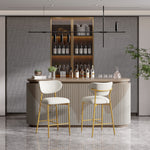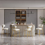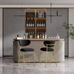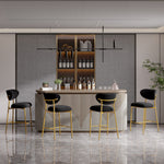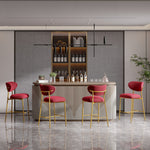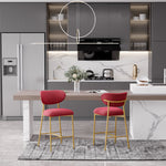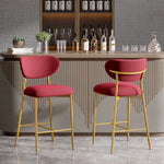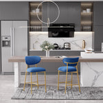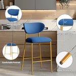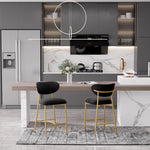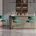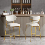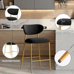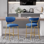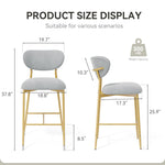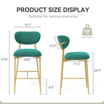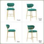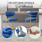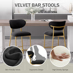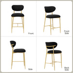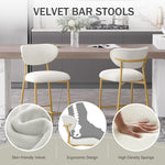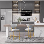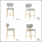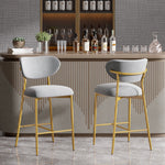 Hwawsaiy Counter Height Bar Stools Set of 2, Velvet Ergonomic Modern Counter Stool with Back, 25.9 inch Seat Height Comfy Bar Chairs with Powder Sprayed Golden Metal Legs, Grey