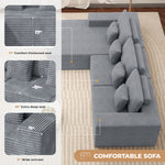 Hawsaiy 111" L-Shaped Corduroy Modular Sectional Sofa with Chaise, Deep Seat Foam Couch with Removable Pillows, No Assembly