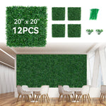 Hawsaiy 12 PCS 20"x20" Grass Wall Privacy Screen Greenery Backdrop Panels with Zip Ties,Artificial Boxwood Grass Panels Hedge Wall for Garden Yard Fence Covering Greenery Wall Background Decor