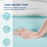 • 【Advanced Gel-Infused Memory Foam】 Our 3-inch high-density memory foam is engineered with aviation-grade memory foam infused with cooling gel beads, which absorbs and disperses heat, maintaining good breathability. And the 3-inch sponge perfectly contours to your body, distributes weight evenly, reduces body pressure, and effectively improves sleep quality.