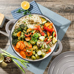 • 🍞【Self-Basting Lid for Moisture Locking】Designed with a shower-type lid, which circulates moisture and preserves juiciness, tenderness, and nutrients in every dish.