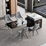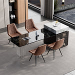 Elevate your dining experience with our Modern Dining Chairs featuring a sleek diamond stitching design. Crafted from premium PU leather, these chairs are soft, breathable, and durable. Ergonomically designed for comfort, they provide excellent lumbar support with a high-density sponge filling. Built on a sturdy wood frame with metal legs and adjustable foot pads, each chair supports up to 300 lbs. Easy to assemble in just 5 minutes, these versatile chairs add a touch of elegance to any space.