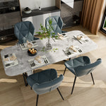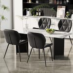 Enhance your dining experience with this ergonomic modern dining chair, crafted for both style and comfort. The chair is upholstered with durable faux leather, featuring a unique geometric backrest design that elevates any interior space. Perfect for your dining room, living area, or office.
