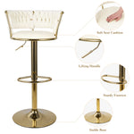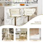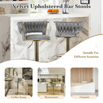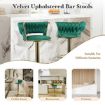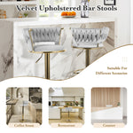 Hawsaiy Modern Velvet Bar Stool Set of 2/4 with Woven Back and Footrest for Kitchen, Bar, and Dining Spaces