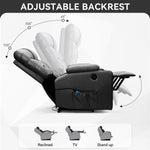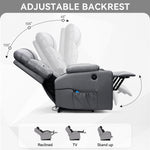 - 【8-Point Massage & Lumbar Heating】Elevate your comfort with our electric lift recliners featuring an advanced 8-point massage system offering 3 modes. Targeting key areas like the upper back, lower back, thighs, and lumbar region, it provides a soothing experience. The integrated lumbar heating adds an extra layer of relaxation, relieving tension in the lower back.