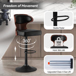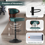 - Practical and Functional: Experience the practicality and functionality of these bar stools, designed to elevate your seating experience. With adjustable height and a 360° swivel feature, these stools effortlessly adapt to different counter or bar heights and offer unparalleled mobility for convenient access.