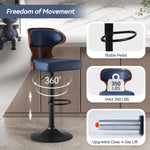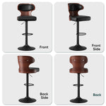 Nalupatio Bar Stools Set of 2 Seat Adjustable Height 24.5-33.5IN - Bentwood Swivel Barstools with Back & Footrest - PU Leather Upholstered Bar Chair for Bar, Kitchen, Dining Room