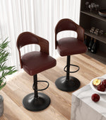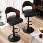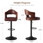 Wooden Barstools PU Leather Upholstered Bar Chairs with Back & Footrest for Bar Kitchen Dining Room