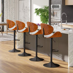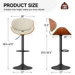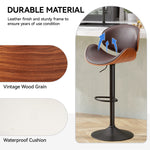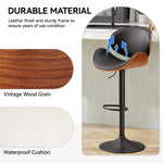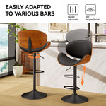 Nalupatio Swivel Bar Stools Set of 2, PU Leather Upholstered Bentwood Barstools with Back & Footrest,Seat Adjustable Height 23.5-32.5IN Counter Height Bar Chairs for Bar Kitchen Dining Room,Black