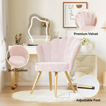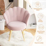 - 【Elegant Velvet Chair】Featuring a shell-shaped design, graceful curves, and soft velvet upholstery with golden legs, this vanity chair exudes style and classic elegance. Ideal as a guest chair, vanity chair, or side chair, it brings cloud-like softness and a luxurious touch to any room.