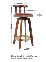 Retro Solid Wood Bar Stools with Swivel Leather Seat