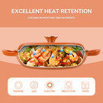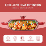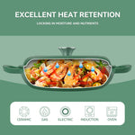 - 🥘【Versatile Use】 Suitable for various cooking scenarios including gas, electric, ceramic, and induction stoves. The natural insulation of cast iron combined with the enamel coating caters to multiple cooking styles and needs.