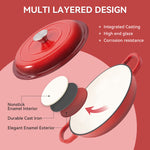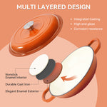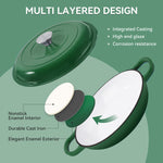- 🥘【Premium Material】 Made from a high-quality cast iron core, coated with food-grade enamel, ensuring durability and even heat distribution for better cooking results and retention of nutrients and flavors.