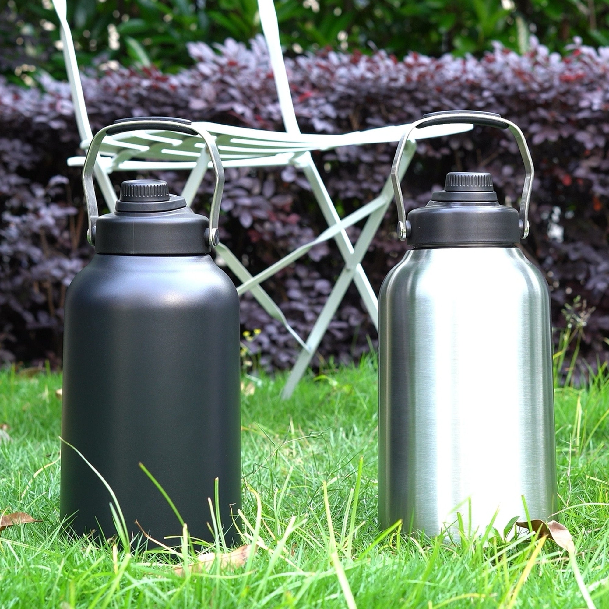 This double-layer insulated bottle keeps beverages hot for 24 hours and cold for 48 hours. It's completely free of BPA, lead, and PAES, ensuring no metallic taste.With a generous 128oz capacity, this water bottle is perfect for all-day outdoor adventures, helping you stay refreshed in the heat.Its user-friendly design includes a handle for easy outdoor use and a 360° rotating stainless steel handle. The fully sealed lid prevents leaks, and the 3.5-inch wide opening makes cleaning and adding ice cubes a breeze.Choose from a variety of sizes and high-end colors to suit different occasions, all with a durable, non-peeling color coating that's safe for use.