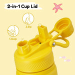 - 🧸【Dual Drinking Lids】Designed with a double drinking lid system, this kids water bottle allows children to sip or drink freely based on their needs. Easy to switch, fun to use, and perfect for different activities at school or outdoors.
