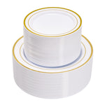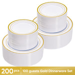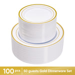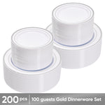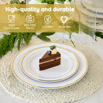 Hawsaiy 100/200PCS Disposable Plastic Plates Set, White Plates with Gold Rim, 7 Inch & 10 Inch Party Dinner Plates, BPA Free, Food Grade, Heavy Duty, Reusable