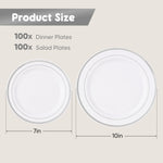 - 🍽️【2 Sizes for Complete Dining】This disposable dinnerware set includes: • 50 × 7 inch dessert & salad plates • 50 ×10 inch dinner plates Ideal for appetizers, salads, main courses, desserts, and cake.