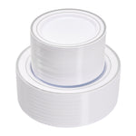 - 🍽️【Elegant Gold & Silver Rim Design】Upgrade your table setting with classic white disposable plates featuring luxurious gold or silver rims. Perfect for adding an upscale touch to weddings, parties, and holiday celebrations.