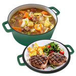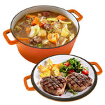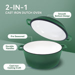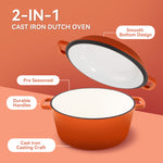 Hawsaiy 2-in-1 Cast Iron Dutch Oven Pot, Enameled Pots with Lid for Bread Baking, Cooking, Stewing, Heavy-Duty & Nonstick, Oven Safe up to 500°F, Dual Handles, Works on All Stovetops