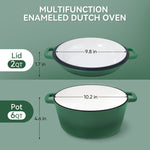 - 🍞【2-in-1 Design】 Features a 6QT Dutch oven and a 2QT lid, perfect for cooking stews, soups, frying, and more. Allows you to prepare two different dishes at the same time.