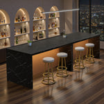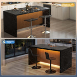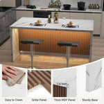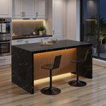 Hawsaiy 63" Modern LED Rectangle Dining Table Kitchen Island with Marble Top, 6 Seater Dining Table with Lights for Home, Kitchen, Office