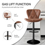 - 【Safety Guarantee & Easy to Clean】Sturdy and comfortable for extended sitting, our bar stool boasts SGS certified gas lift, solid pedestal base, and metal pole and base that can support up to 300 lbs, ensuring stability. FSC-certified wood frame and high-density sponge padding provide durability and comfort, while the easy-to-clean faux leather makes it perfect for commercial and home use. It also features a rubber ring on the base that prevents floor scratching.