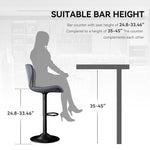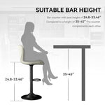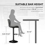 - 【Adjustable Height & 360˚Swivel】Elevate your space with our adjustable and rotating bar stools. Whether it's a casual dinner or a social gathering, these bar stools offer a seat height range of 24.8" to 33.46" and a 360° swivel, ensuring everyone is comfortable. With the ability to adjust to counter heights of 36 to 45 inches, these stools are versatile for any setting. Plus, their smooth and quiet swivel motion adds to the seamless experience